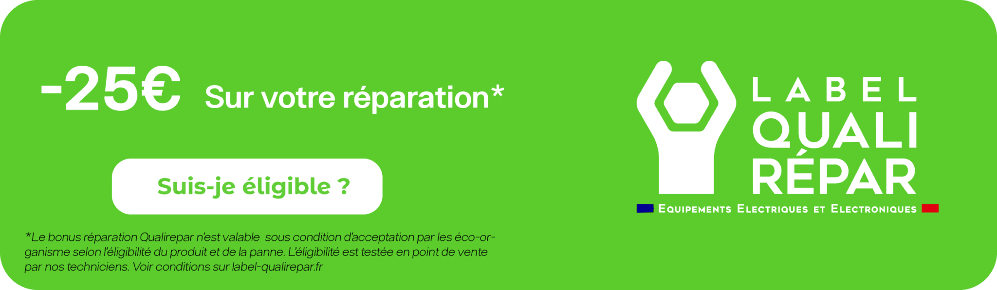 Comment ça marche ? Demande Je fais une demande de devis, en choisisant le modèle ainsi que la panne. Rendez-vous Je prends rendez-vous Eligibilité Le technicien teste l’éligibilité de mon appareil au bonus jusqu’a 25€ Qu’est ce que le bonus réparation ? Une aide à la réparation pour les particuliers financé par les éco-organismes. Elle … Continue reading Qualirépar